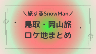 聖地巡礼 【旅するSnowMan(旅スノ)】鳥取・岡山で阿部亮平&宮舘涼太が訪れたロケ地:鳥取砂丘、砂の美術館、ゆらくHANARE、日々花みずうみ喫茶室 2025年9月14日配信の【旅するSnowMan】鳥取・岡山を舞台に阿部亮平さん・宮舘涼太さんの2人が旅ロケをしました。訪れた場所やお店をまとめます!旅スノ鳥取・岡山のロケ地一覧旅スノで阿部亮平さんと宮舘涼太さんが訪れた場所をまとめます!オ... 2025.09.15 聖地巡礼