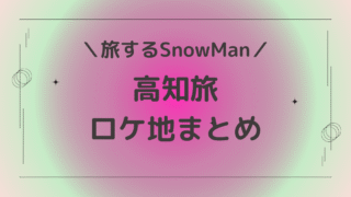 聖地巡礼 【旅するSnowMan(旅スノ)】高知で深澤辰哉&佐久間大介が訪れたロケ地:居酒屋べんべん、物部川、ホテル湖畔遊 2025年9月7日配信の【旅するSnowMan】高知を舞台に深澤辰哉さん・佐久間大介さんの2人が旅ロケをしました。訪れた場所やお店をまとめます!旅スノ高知のロケ地一覧旅スノで深澤辰哉さんと佐久間大介さんが訪れた場所をまとめます!オープニング... 2025.09.07 聖地巡礼