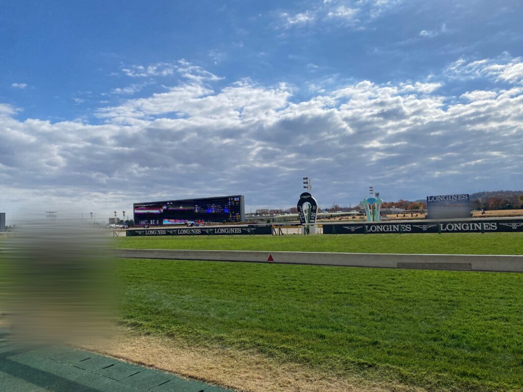今回は馬券は買わずに散策をしてみました。指定席券は買わなかったので、立ち見エリアに行ってみたのですが、馬が走る芝生エリアを間近に見られて大迫力でした。
