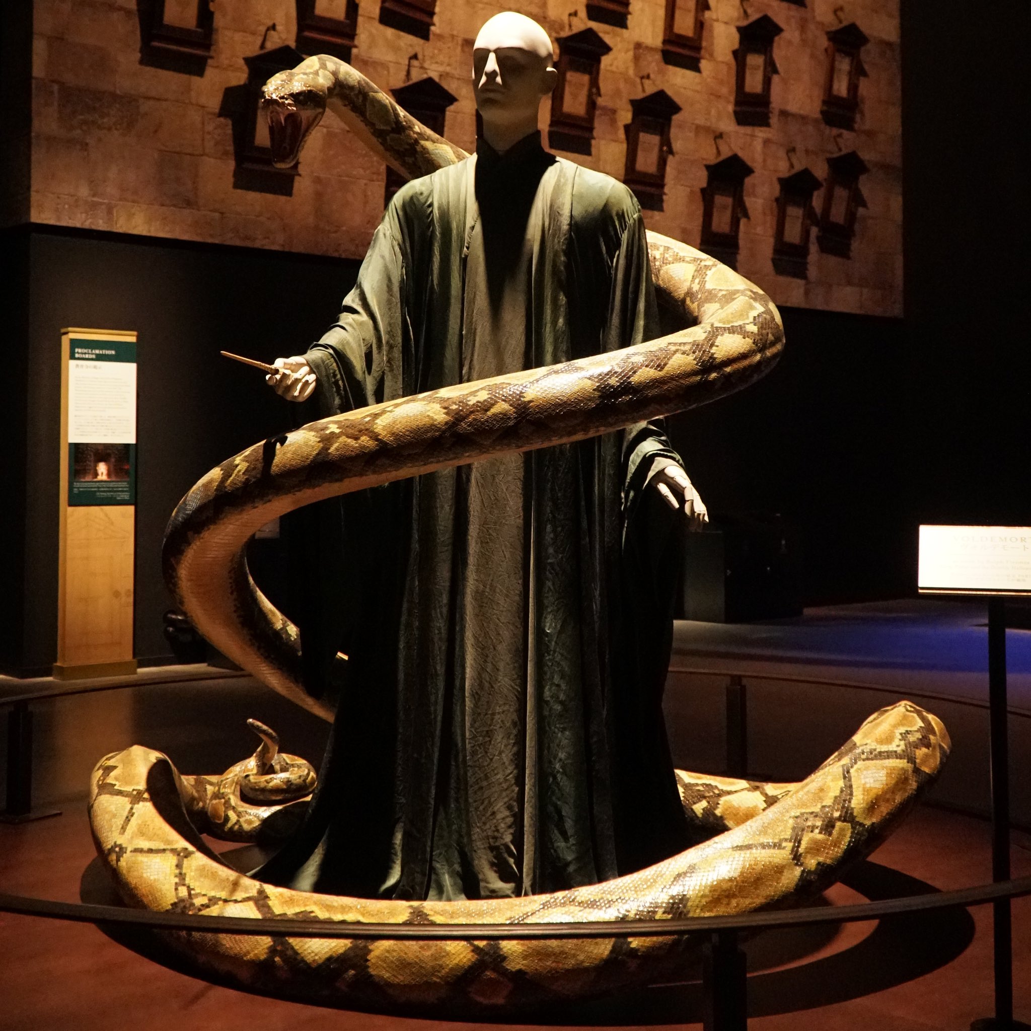 ヴォルデモートの衣装とナギニっていうヘビも、飼ってる状態で杖を構えてるマネキンがあった。それに対して攻撃してるやつもいれば、俺はめっちゃ苦しめられてる表情で写真撮るとか、自分の持てる表現力を全力で使って写真撮りまくってた。