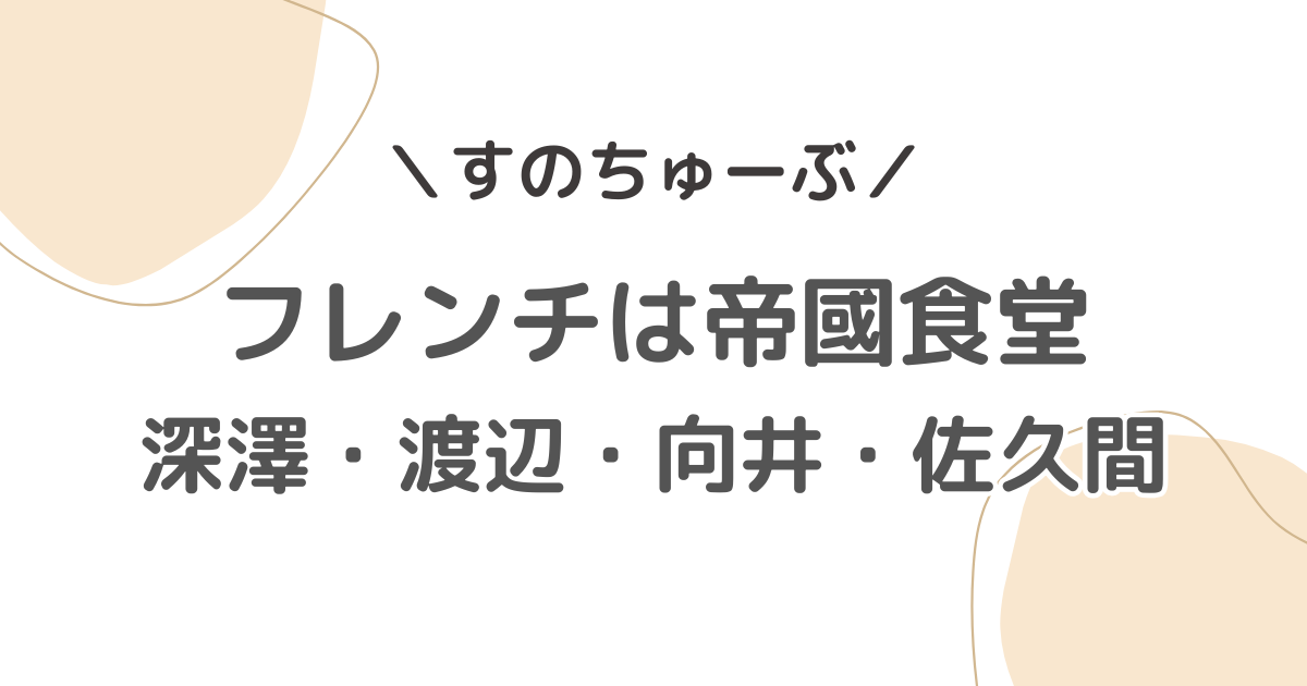 すのちゅーぶでSnowManの深澤辰哉さん・渡辺翔太さん・向井康二さん・佐久間大介さんの4人がフレンチを食べたレストランは『帝國食堂』です。