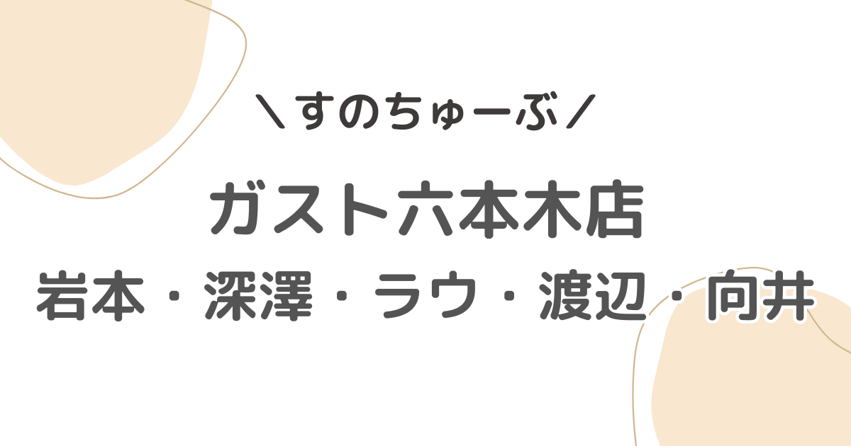 すのちゅーぶで岩本照さん・深澤辰哉さん・ラウールさん・渡辺翔太さん・向井康二さんが訪れたガストは六本木店です。